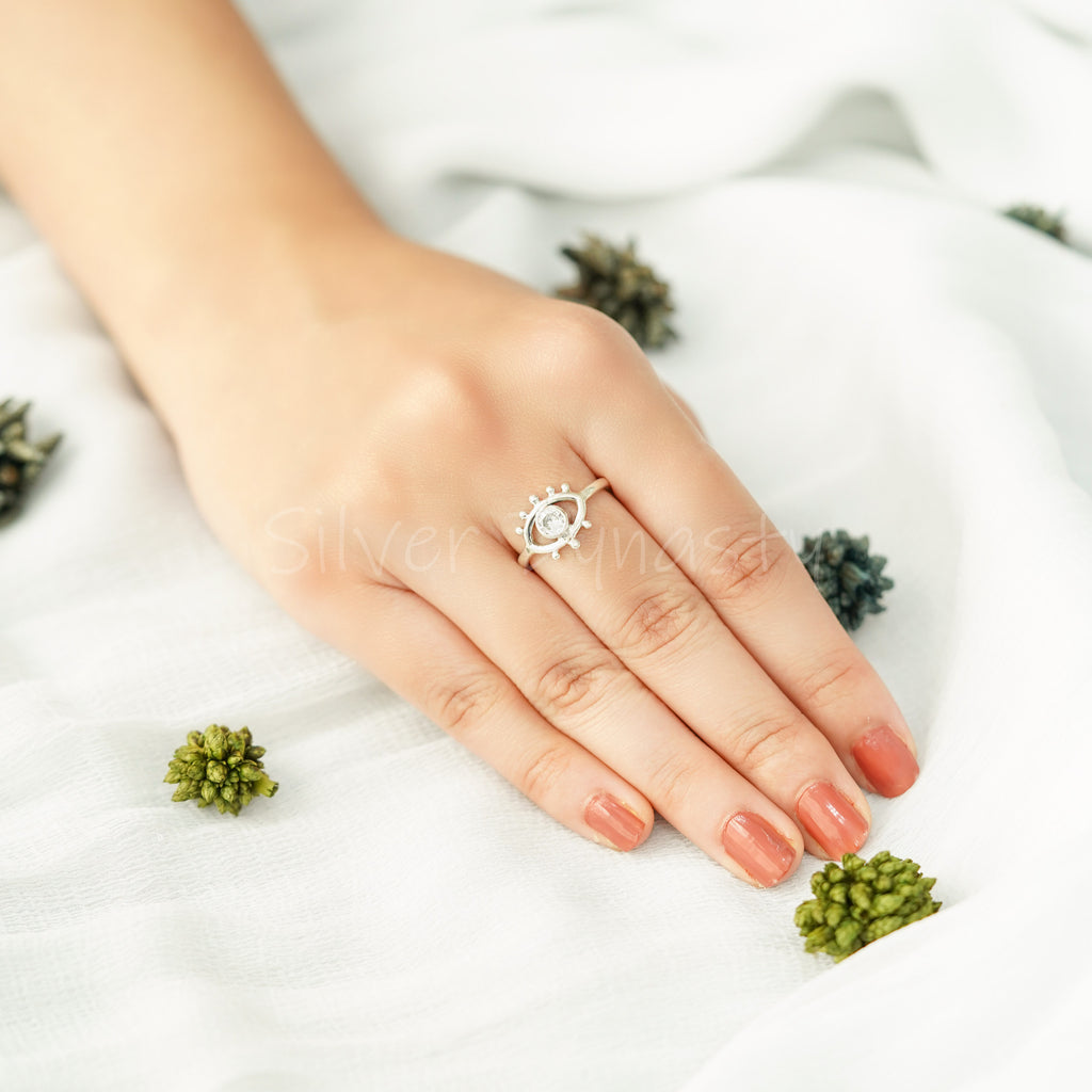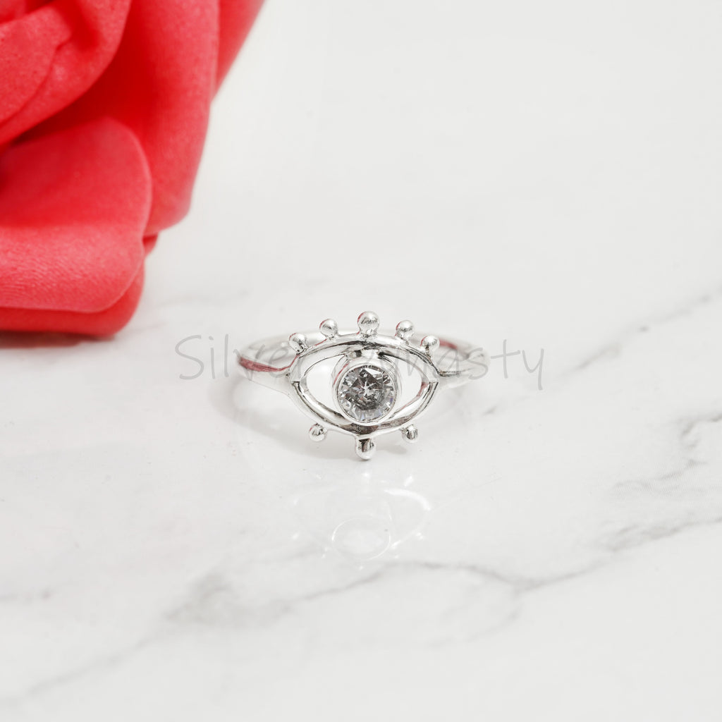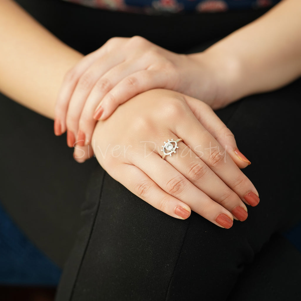 Eye Ring with Zircon, 925 Solid Sterling Silver Ring, Simple Band