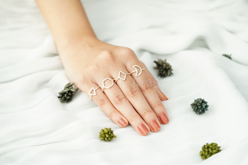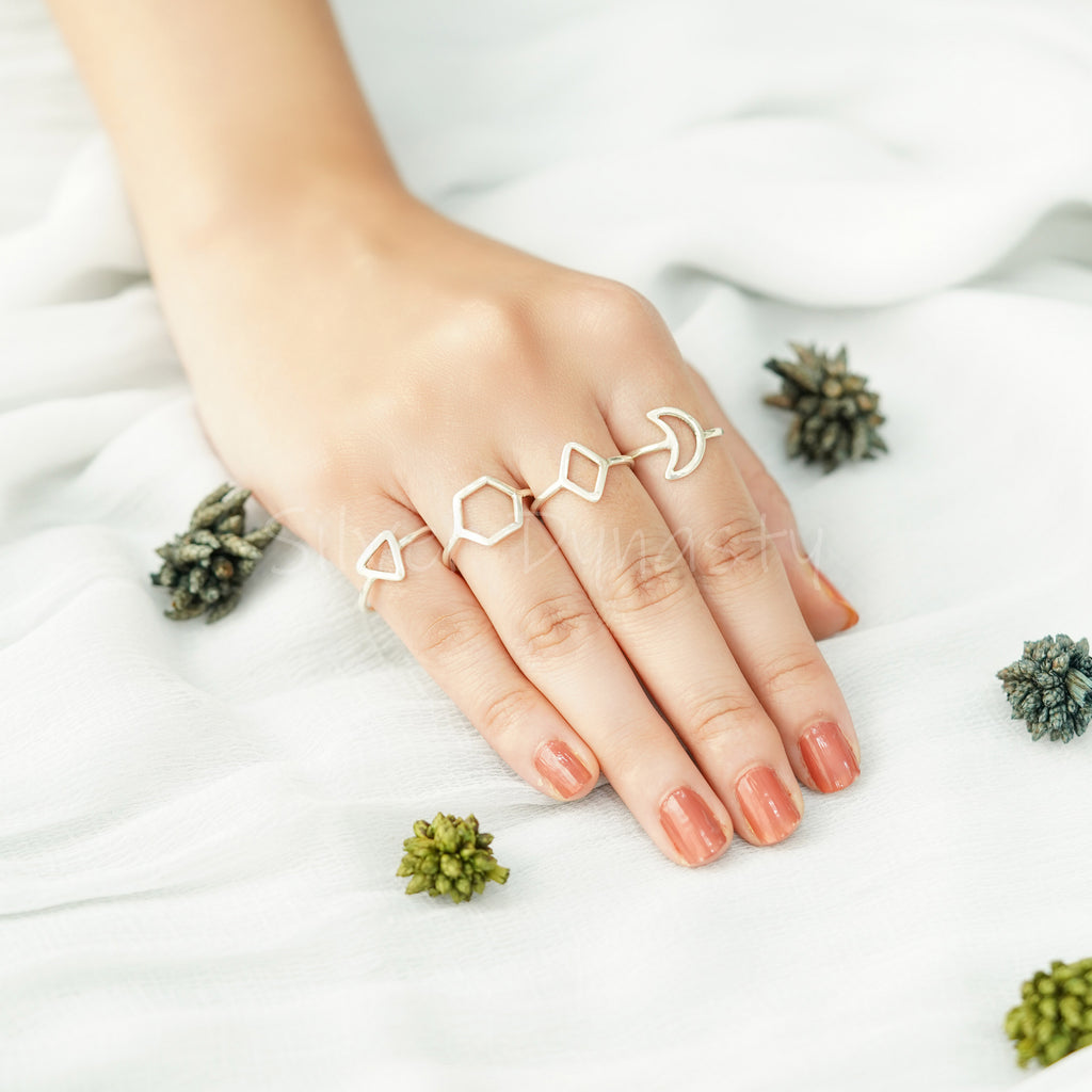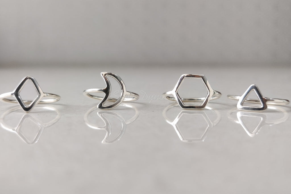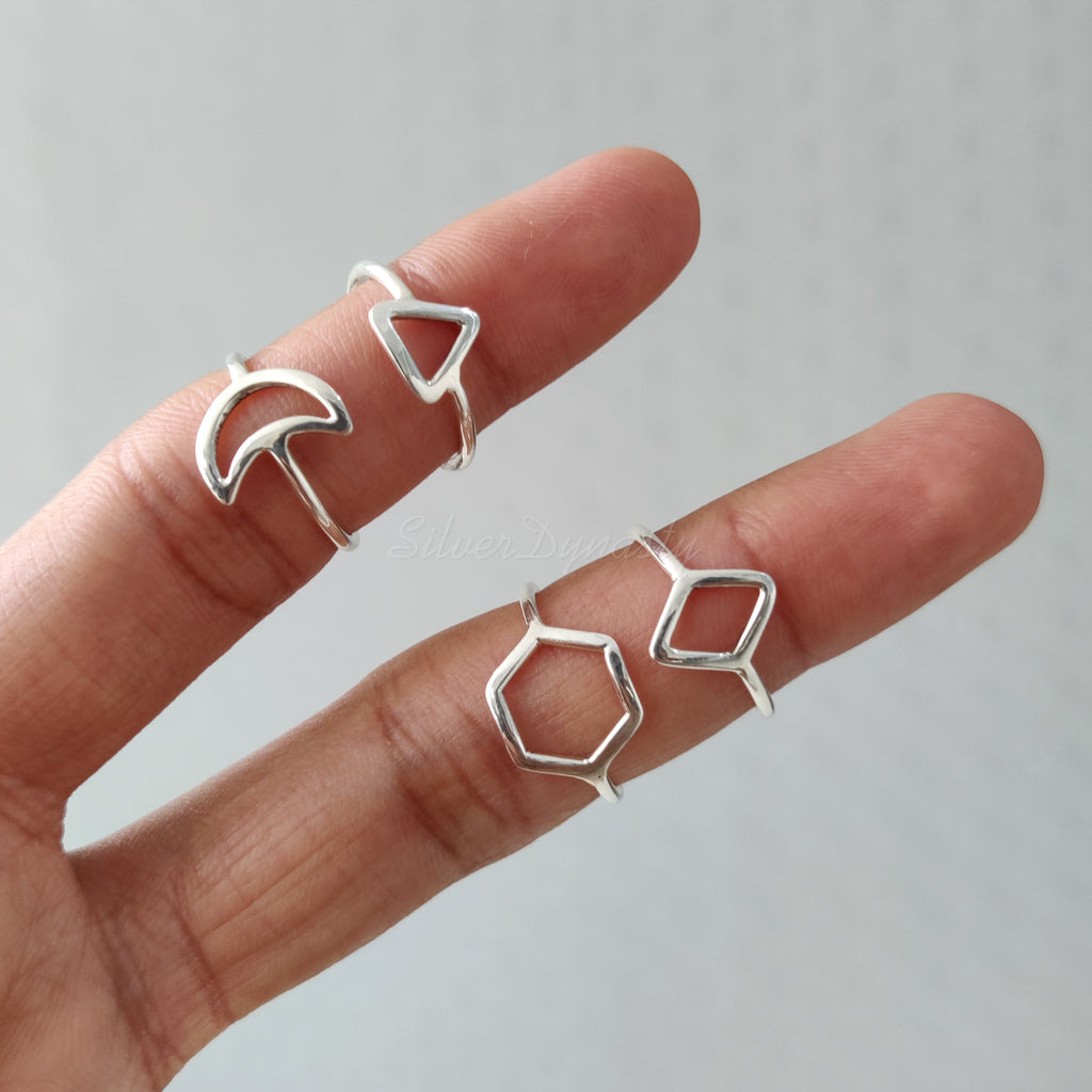 Silver Star Band, 925 Solid Sterling Silver Ring, Set of Four (4)