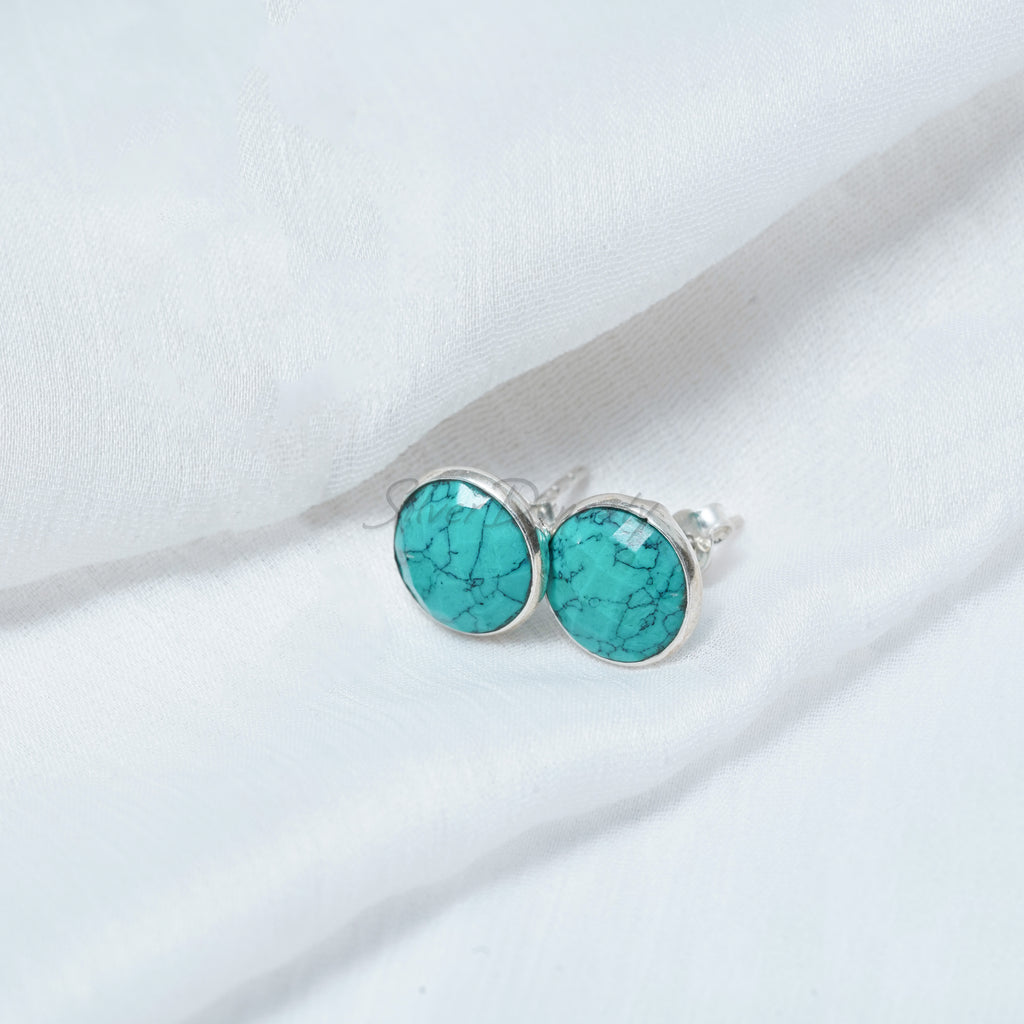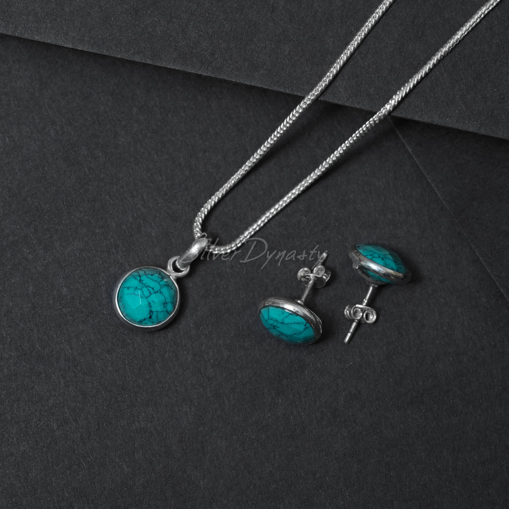Turquoise Minimalist Pendant and Earring Set, Pearl Set, 925 Sterling Silver Set