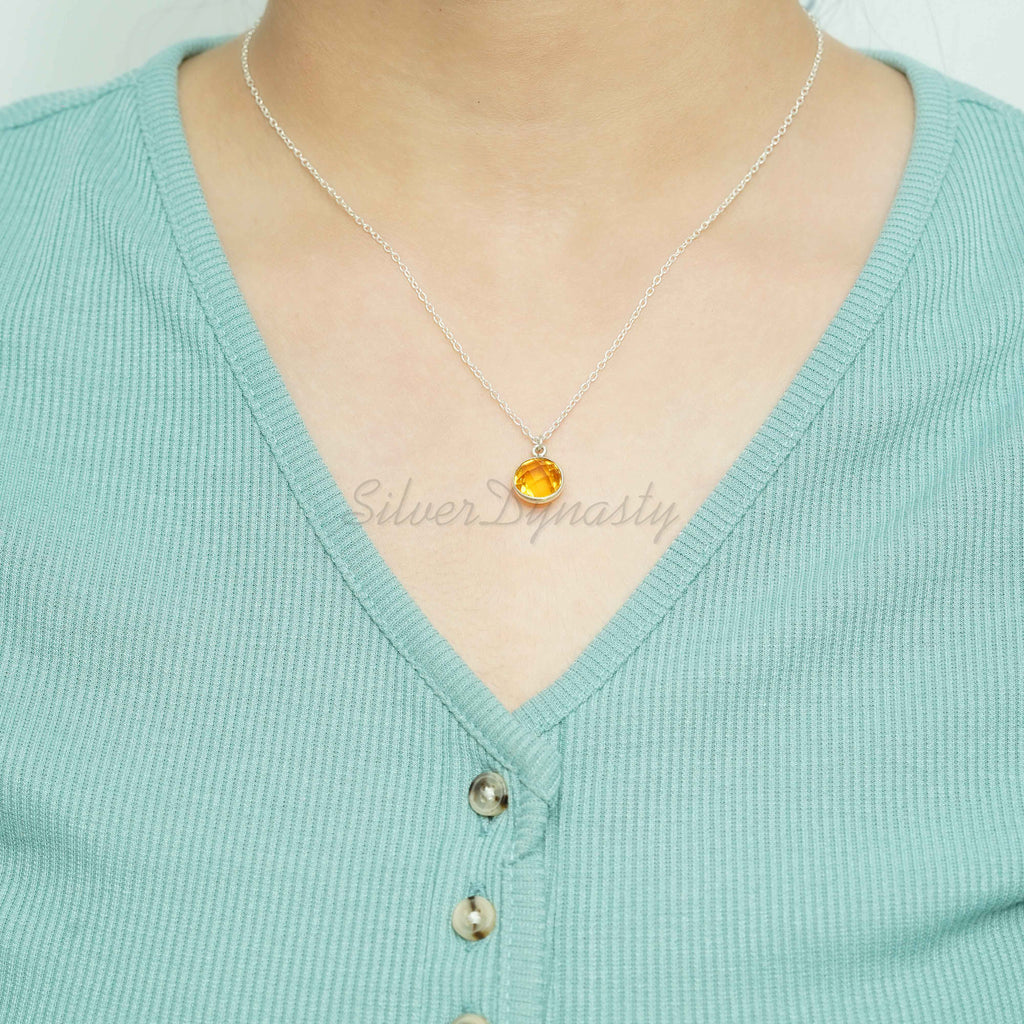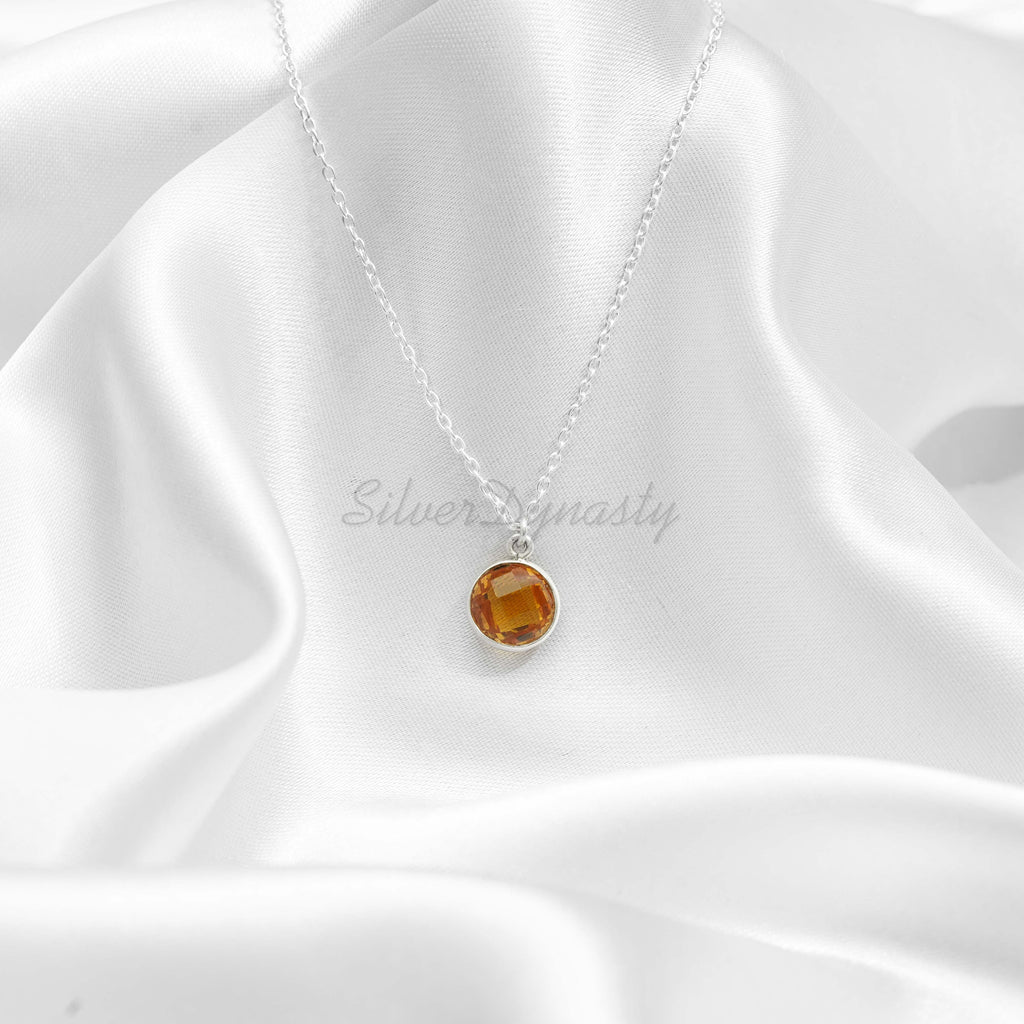 Natural Citrine Necklace, Pendant 92.5 Sterling Silver