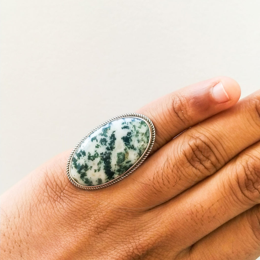 'Antheia' Tree Agate 925 Solid Sterling Silver Ring