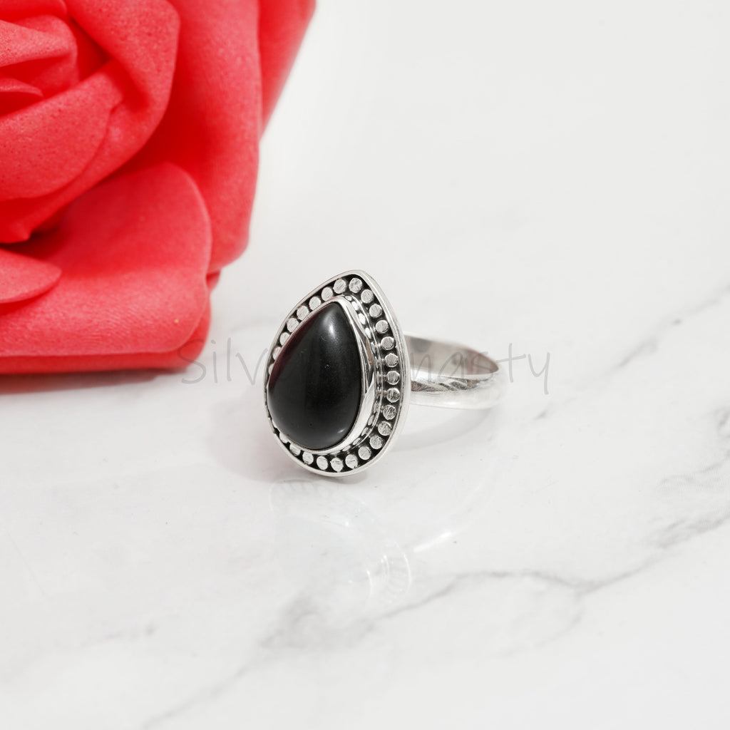'Boho' Black Onyx 925 Solid Sterling Silver Ring