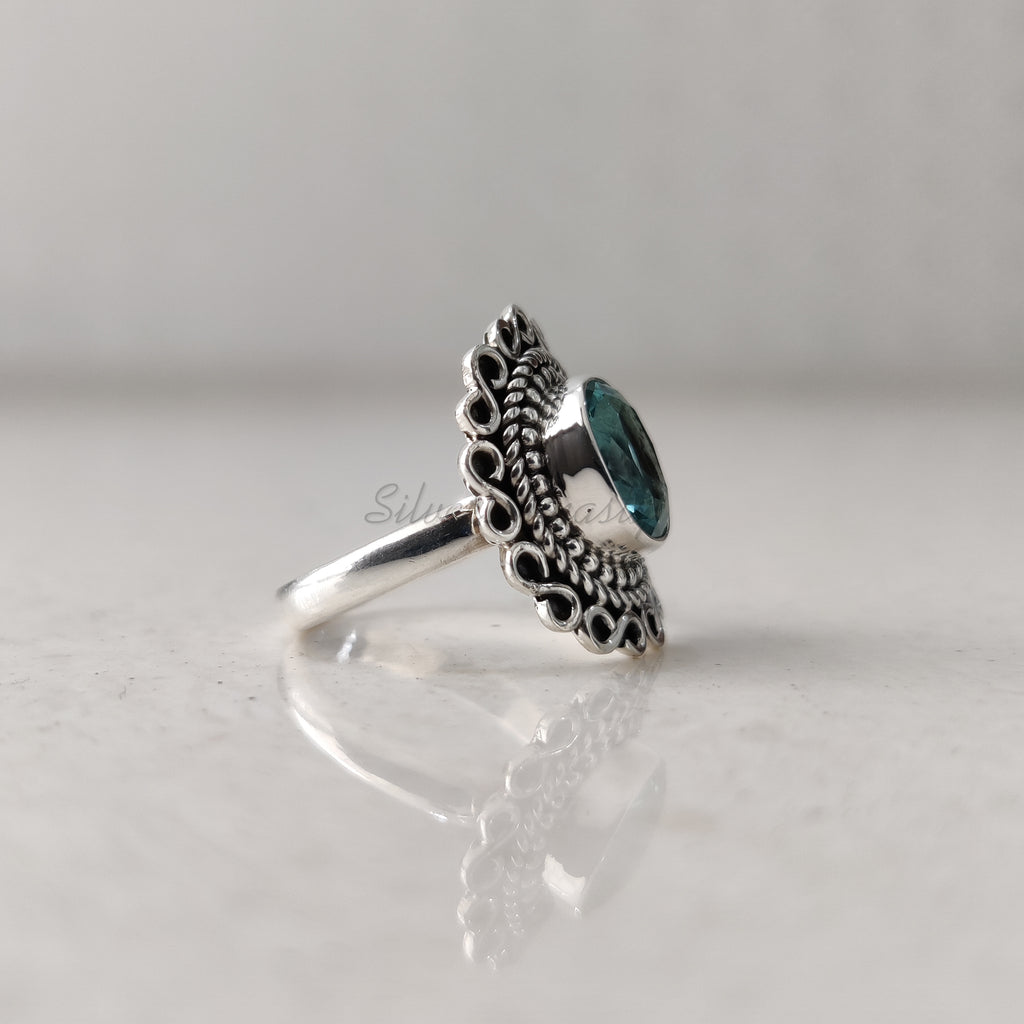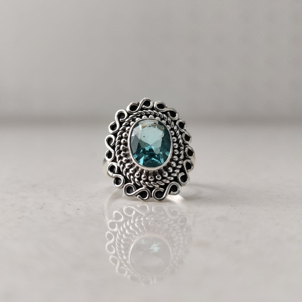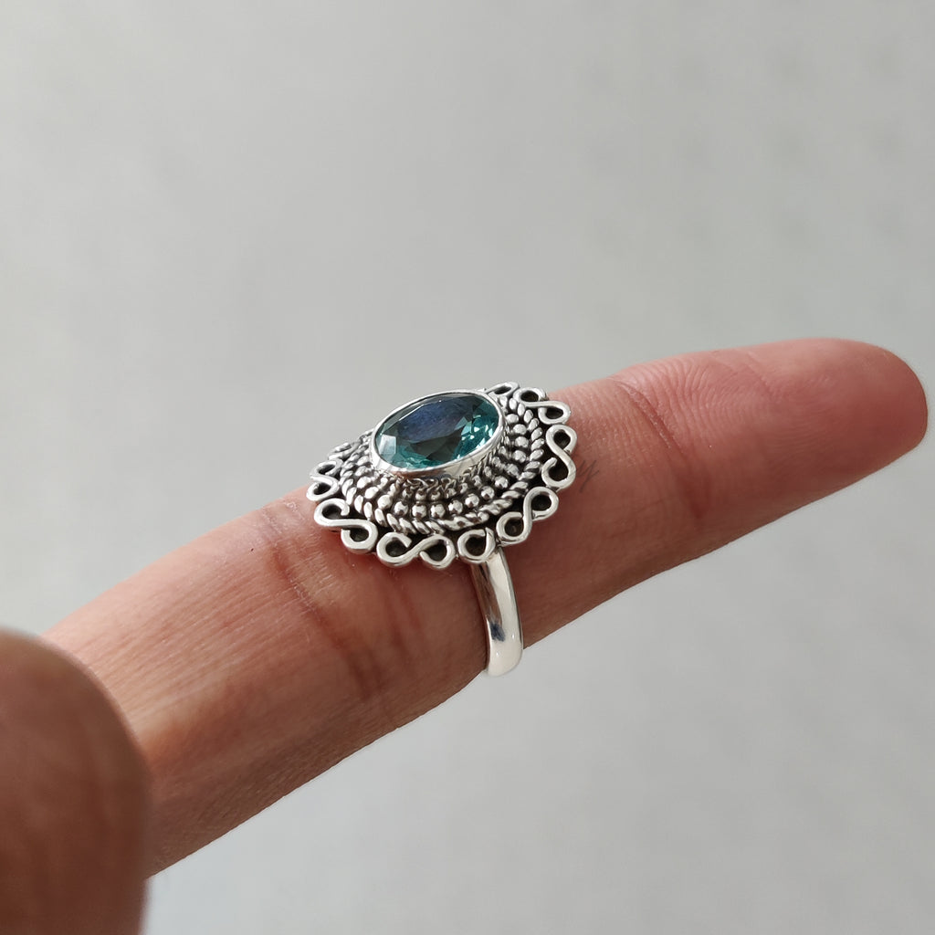 'Boho' Blue Topaz 925 Solid Sterling Silver Flower Ring