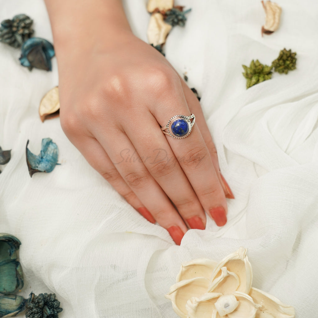 'Boho' Lapis Lazuli 925 Solid Sterling Silver Ring