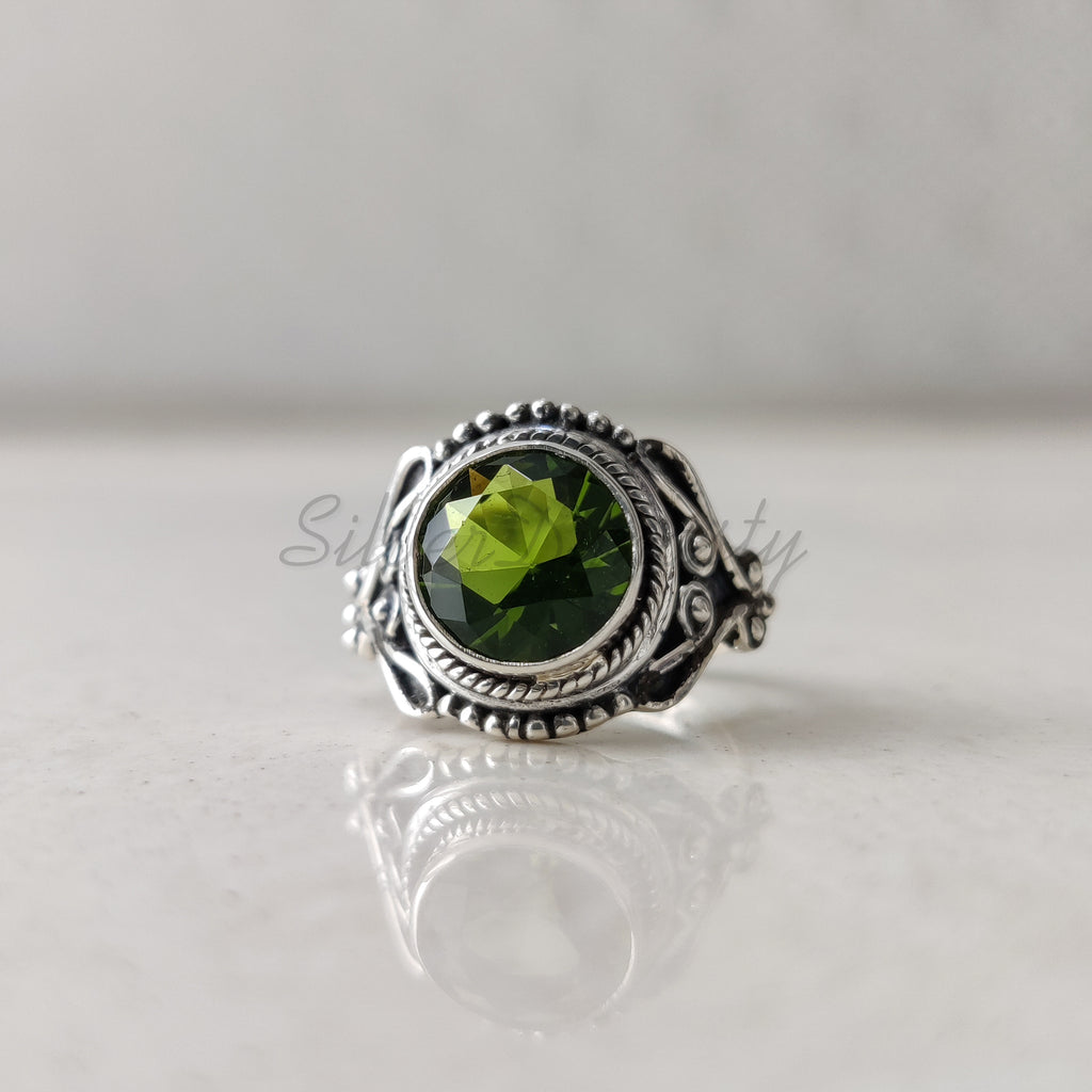 'Boho' Peridot, 925 Solid Sterling Silver Ring for Women