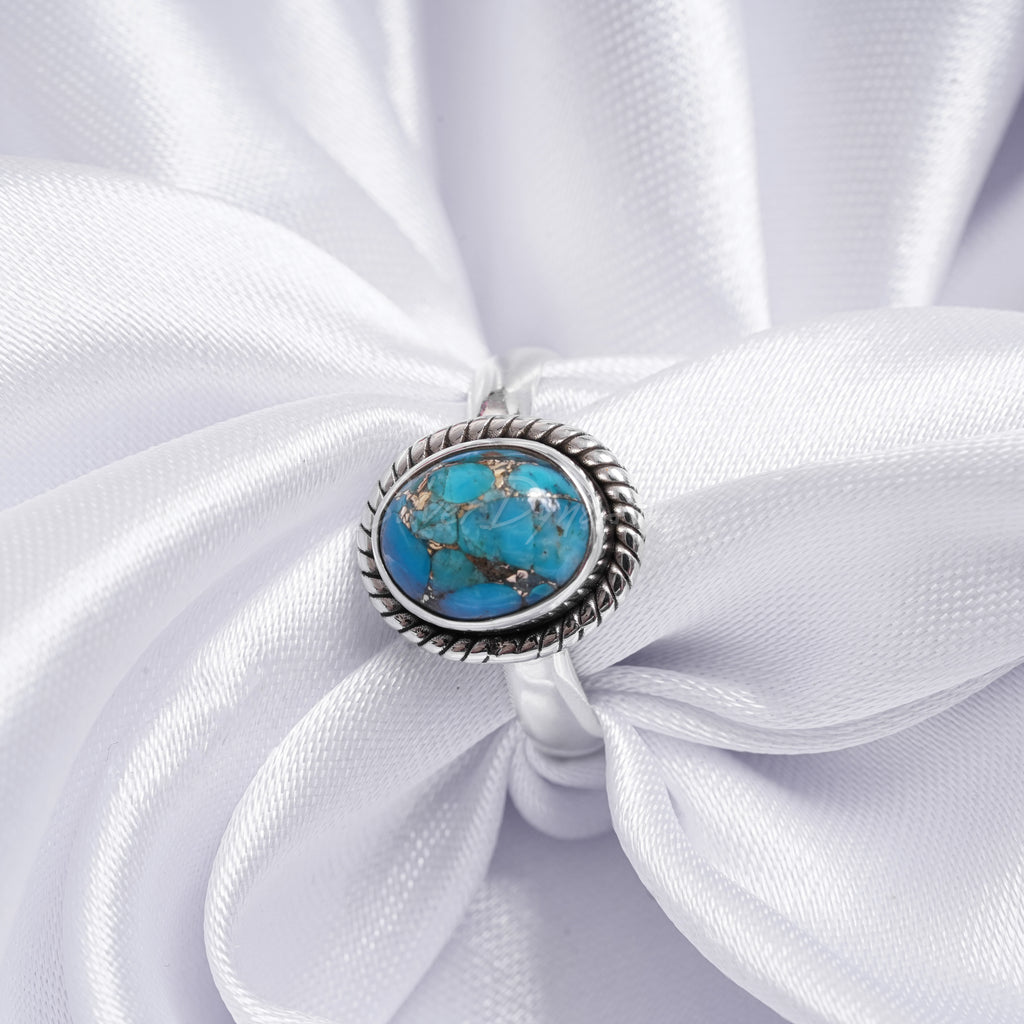 'Fortuna' Blue Copper Turquoise 925 Solid Sterling Silver Ring