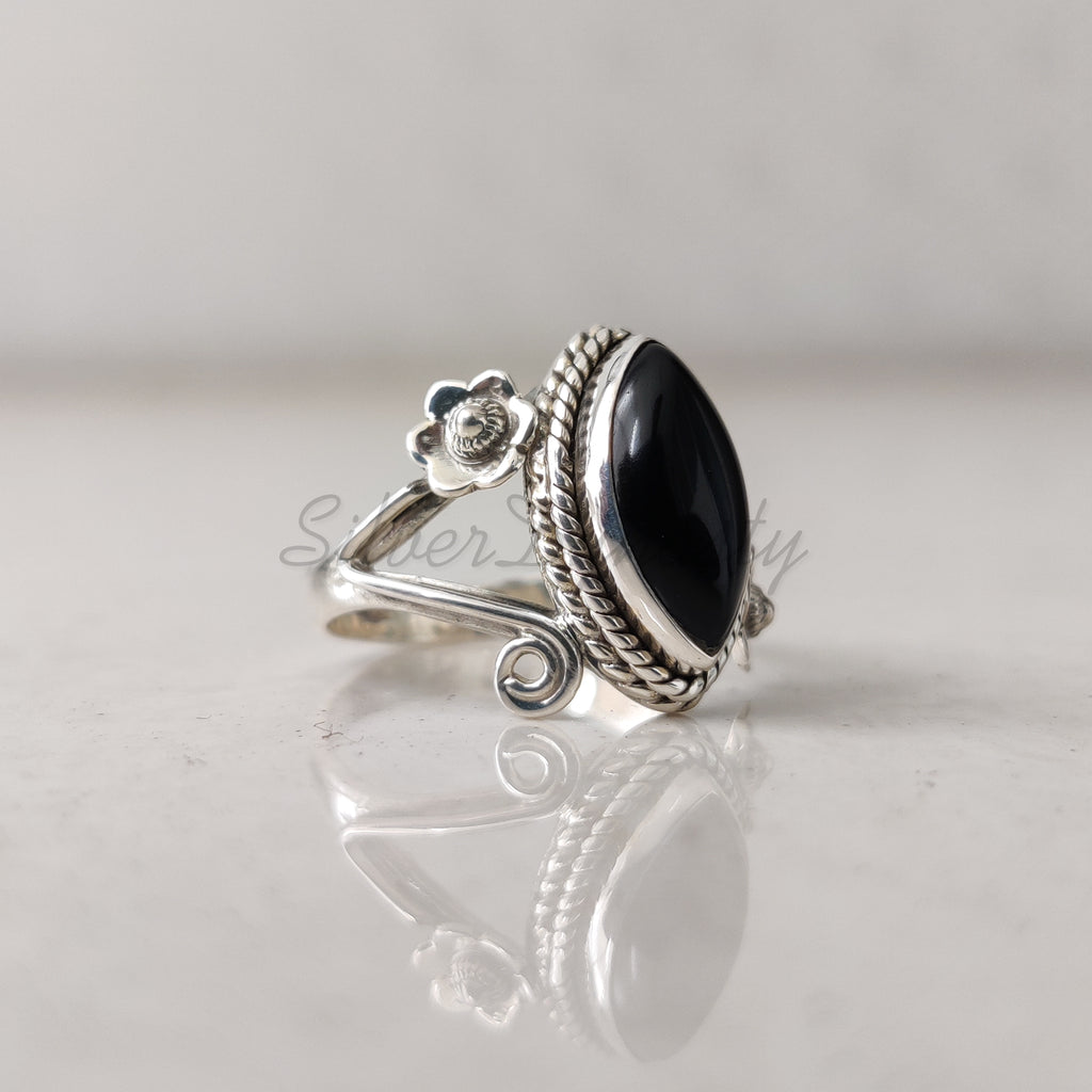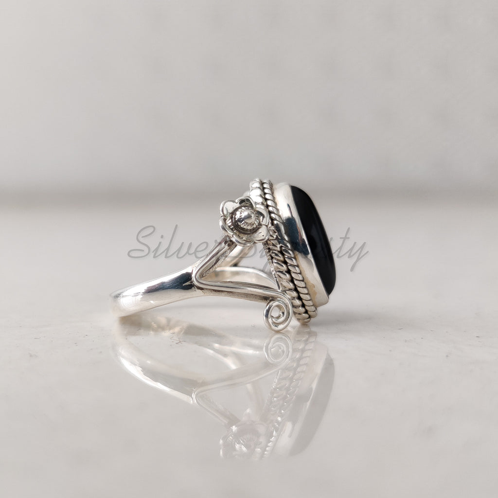 'Designer' Black Onyx 925 Solid Sterling Silver Ring