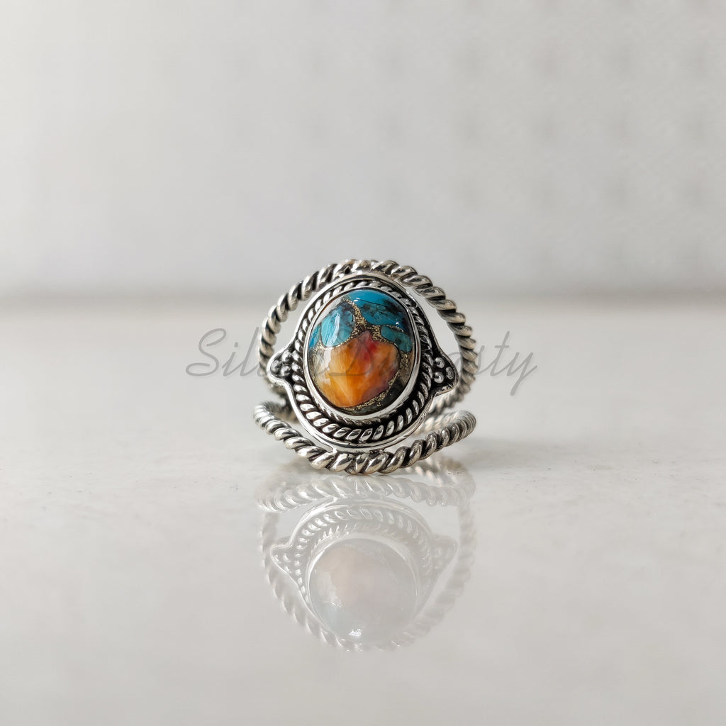 'Designer' Oyster Copper Turquoise 925 Solid Sterling Silver Ring