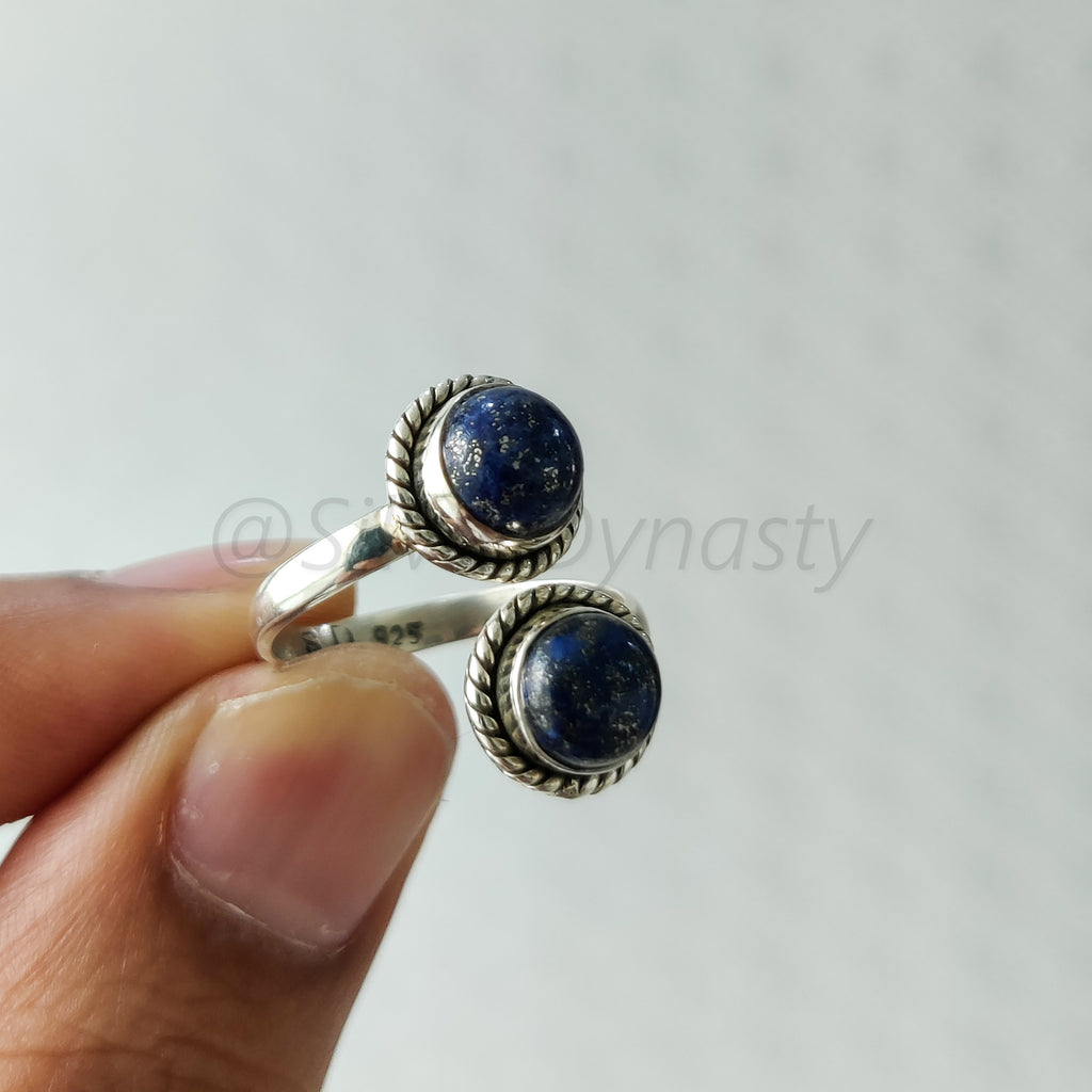 'Double Stone' Lapis Lazuli 925 Solid Sterling Silver Ring Adjustable