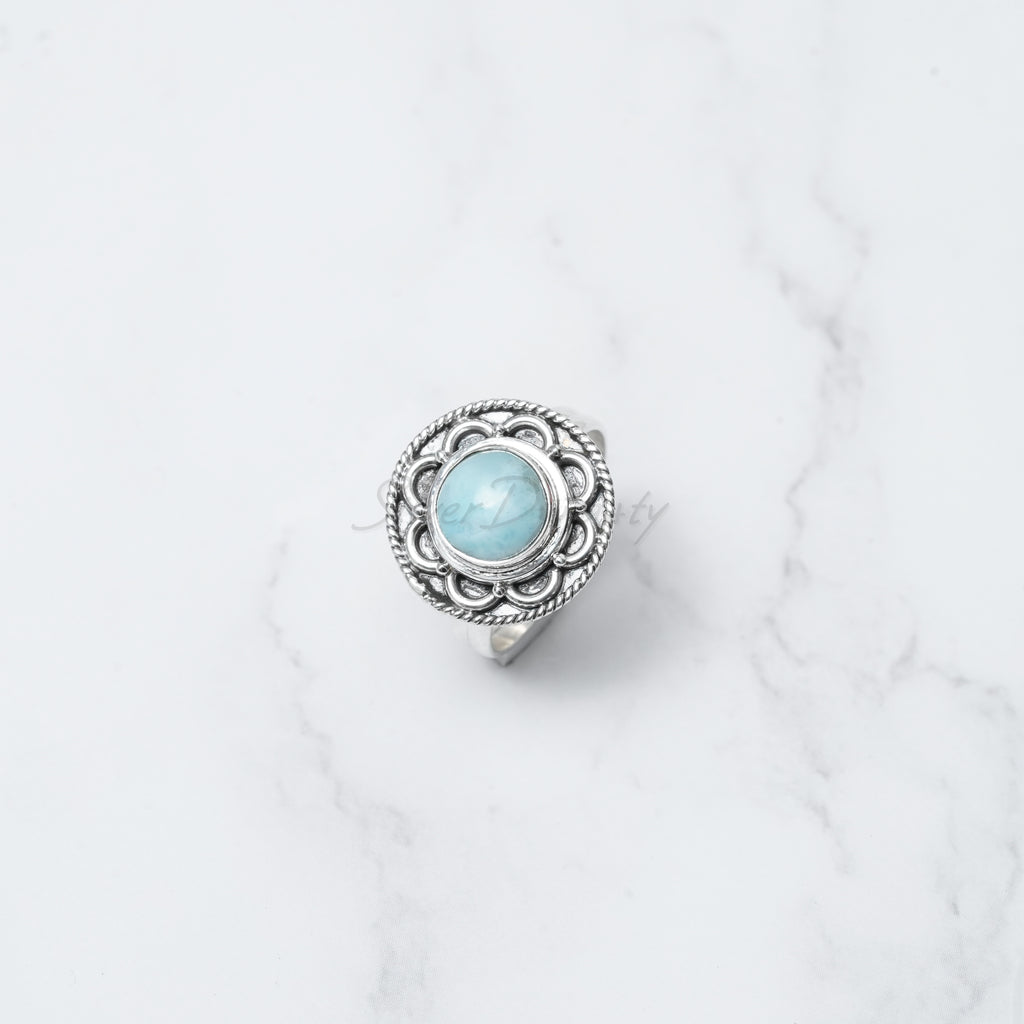 Larimar Ring, 925 Solid Sterling Silver Ring
