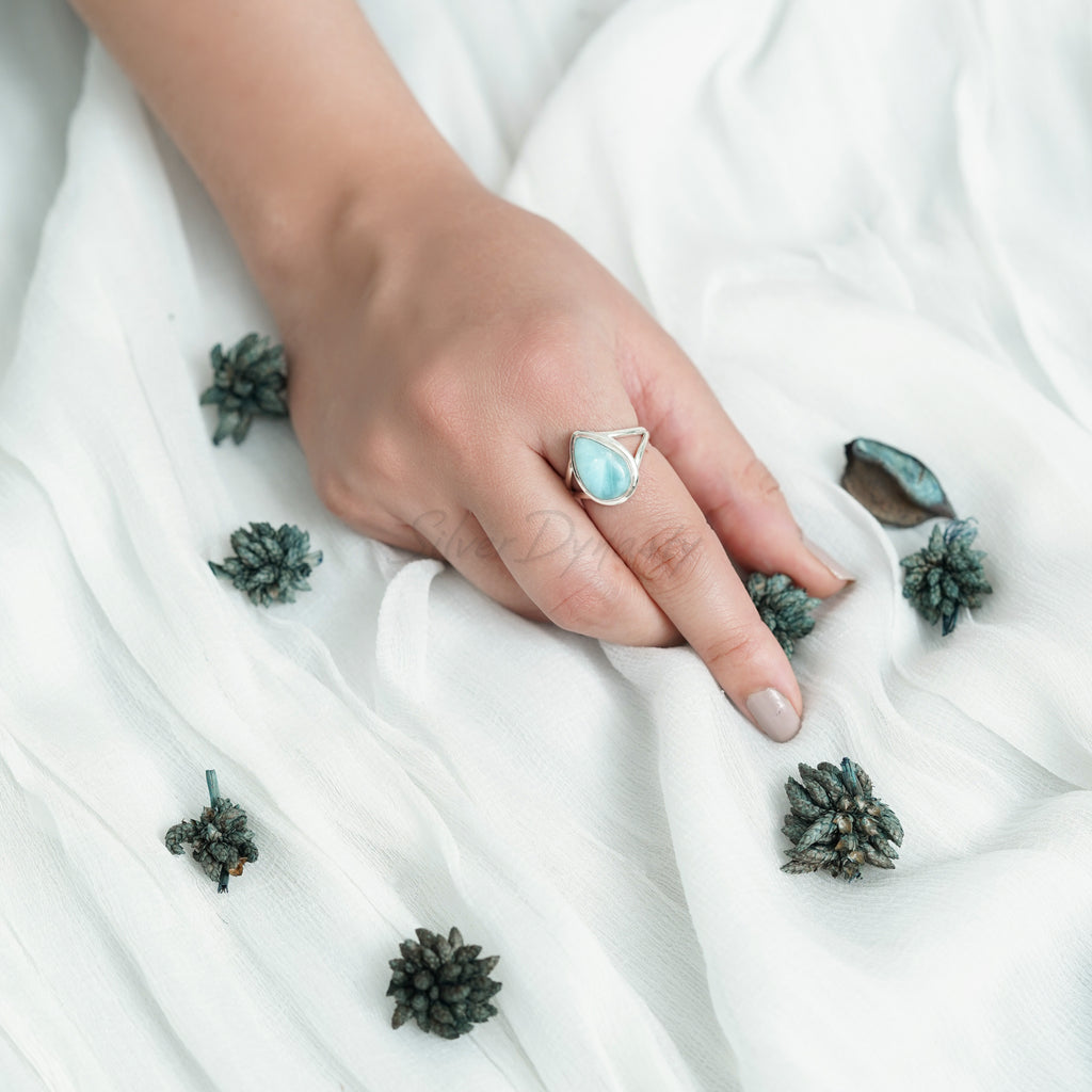 Larimar Ring, 925 Solid Sterling Silver Ring