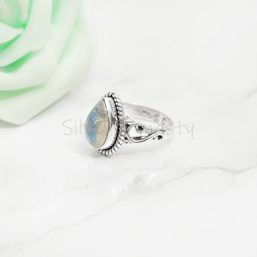 Moonstone 925 Solid Sterling Silver Ring, Moonstone Ring