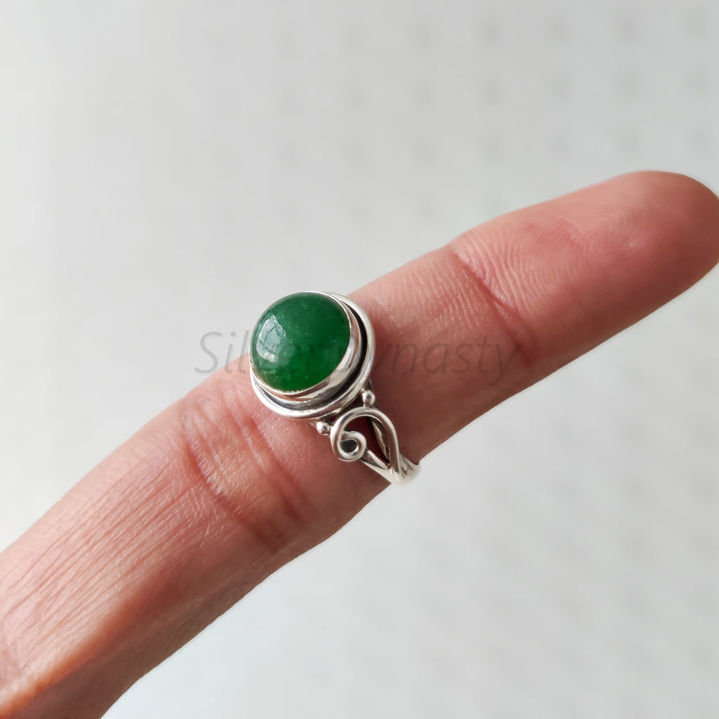 Natural Jade, 925 Solid Sterling Silver Designer Ring