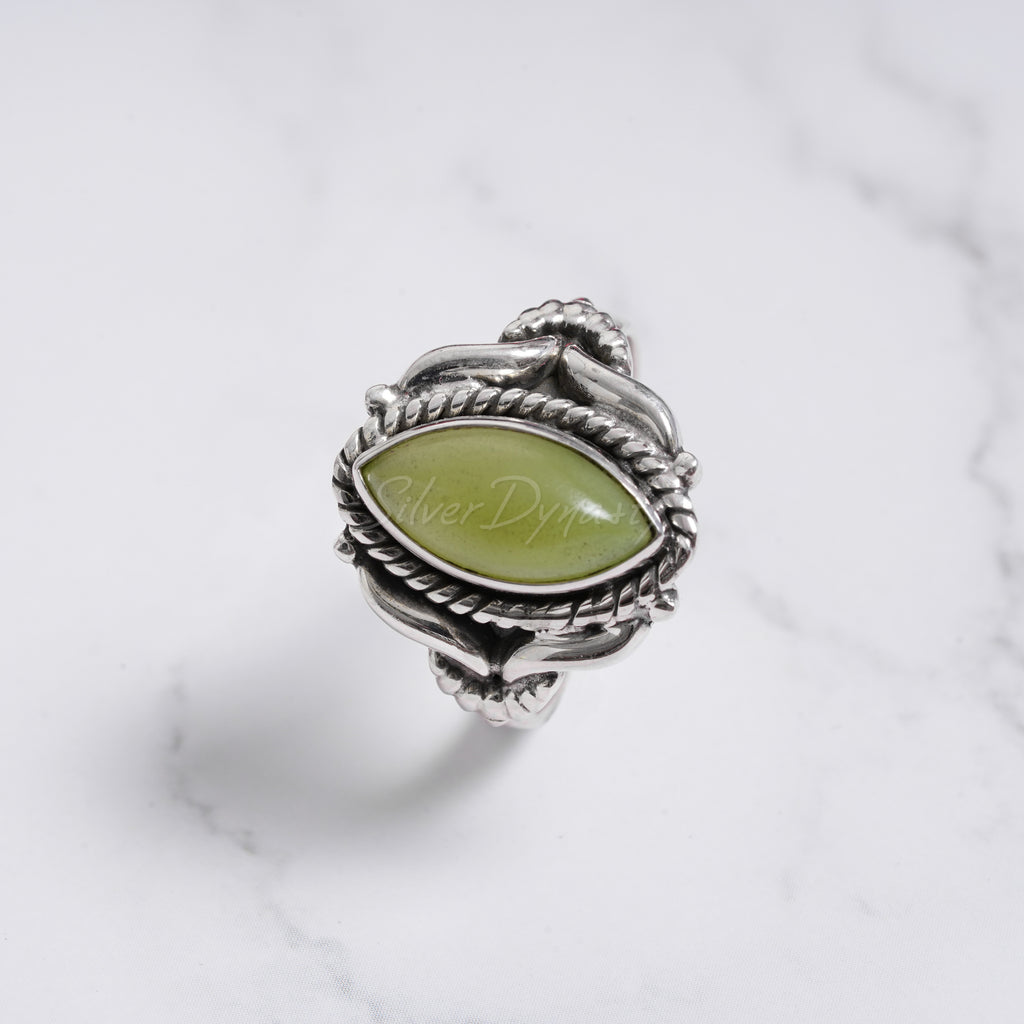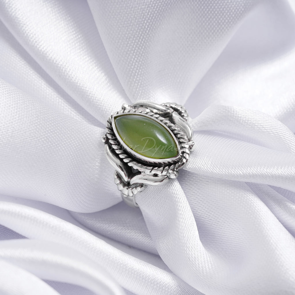 Natural Peridot, 925 Solid Sterling Silver Ring Cabochon