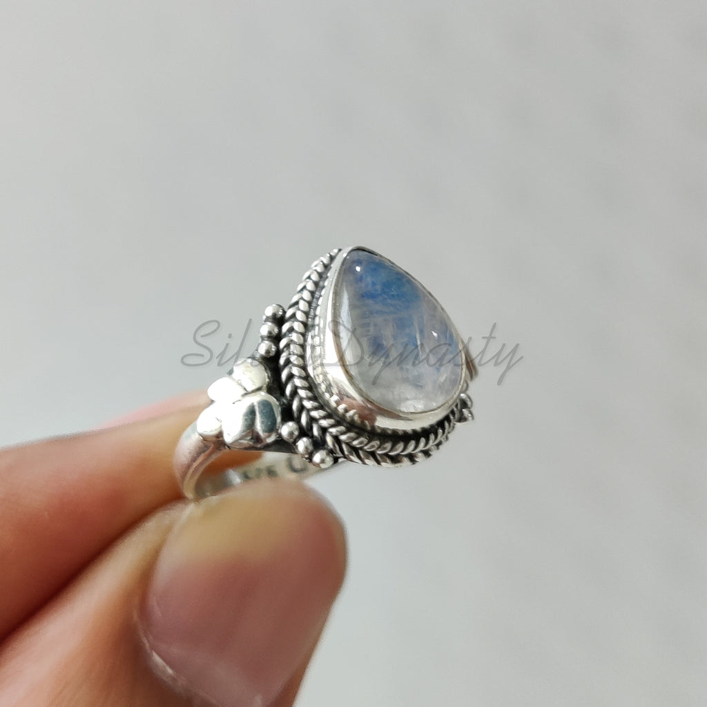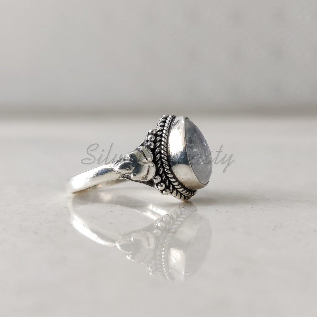 'Statement' Natural Rainbow Moonstone 925 Solid Sterling Silver Ring