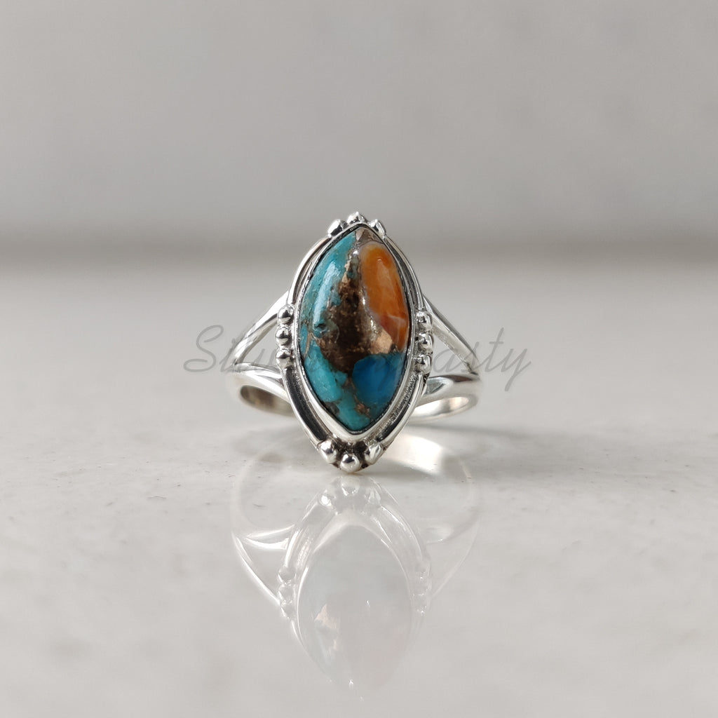 'Statement' Oyster Copper Turquoise 925 Solid Sterling Silver Ring